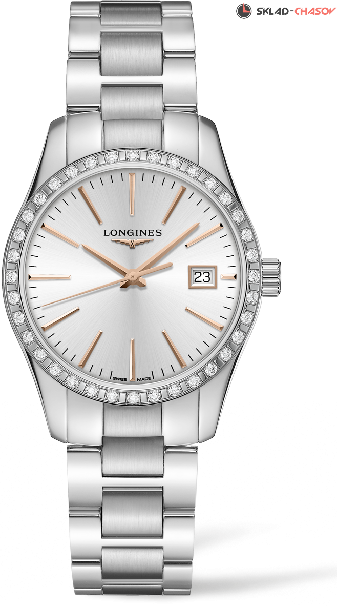 Женская кварцевая модель. Безель украшен 36 бриллиантами. Расположение даты в районе 3 часов.