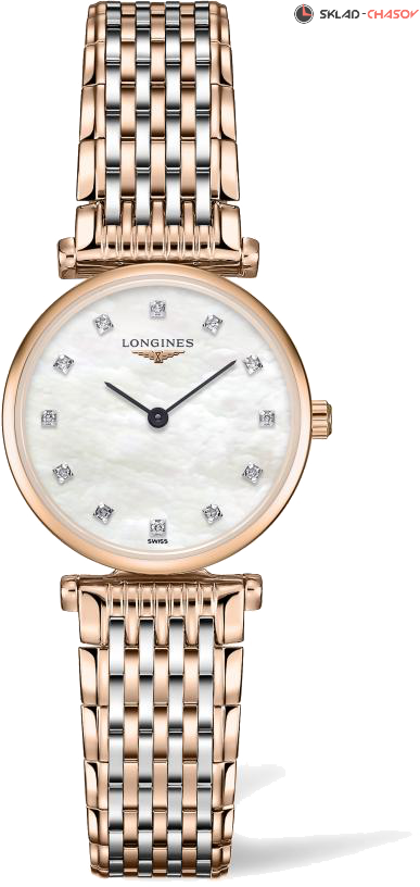 Классические женские часы, перламутровый циферблат украшен 12 бриллиантами общим весом 0.048 ct