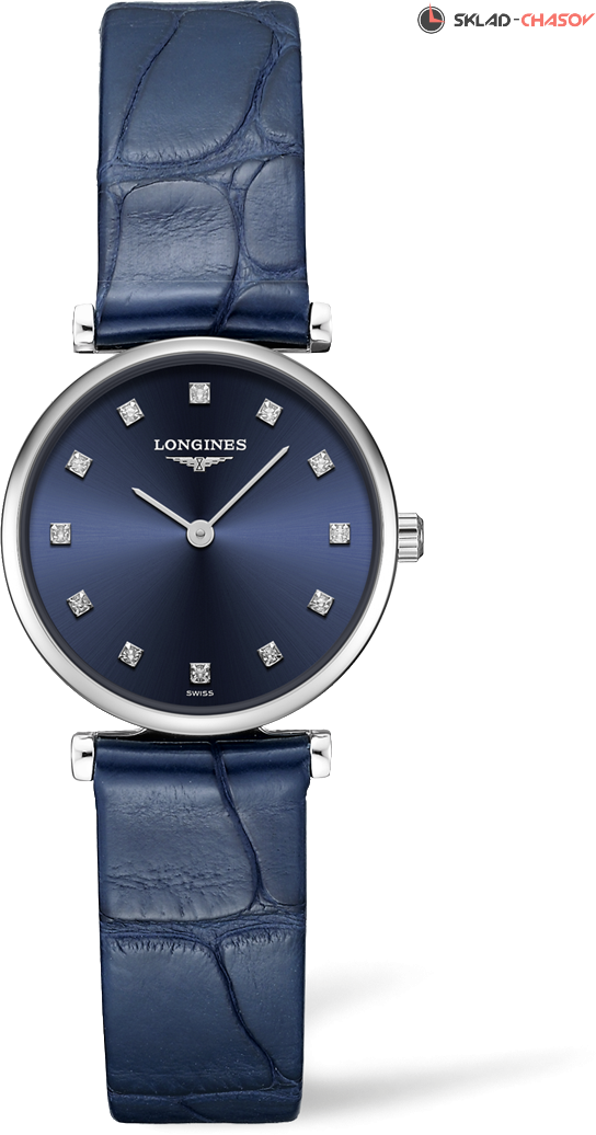 La Grande Classique — символ классической элегантности и совершенства часов Longines. Характерными особенностями коллекции являются тонкий корпус и большое разнообразие версий. Выразительная и классическая женская кварцевая модель, индикация часов и минут центральными стрелками, 12 бриллиантов на циферблате ( 0.048 ct)