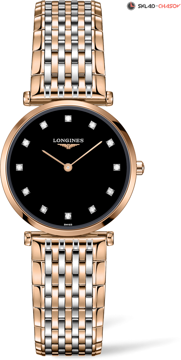 La Grande Classique — символ классической элегантности и совершенства часов Longines. Характерными особенностями коллекции являются тонкий корпус и большое разнообразие версий. Выразительная и классическая женская кварцевая модель, индикация часов и минут центральными стрелками, 12 бриллиантов на циферблате ( 0.081 ct)