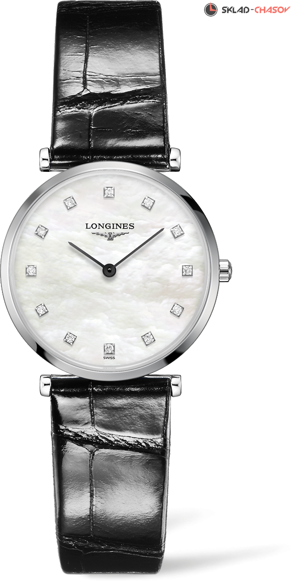 La Grande Classique — символ классической элегантности и совершенства часов Longines. Характерными особенностями коллекции являются тонкий корпус и большое разнообразие версий. Выразительная и классическая женская кварцевая модель, индикация часов и минут центральными стрелками, 12 бриллиантов на циферблате ( 0.081 ct)
