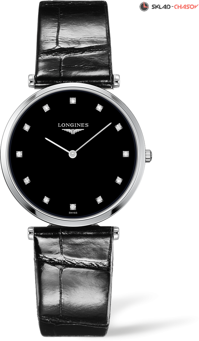 La Grande Classique — символ классической элегантности и совершенства часов Longines. Характерными особенностями коллекции являются тонкий корпус и большое разнообразие версий. Выразительная и классическая женская кварцевая модель, индикация часов и минут центральными стрелками, 12 бриллиантов на циферблате (0.081 ct)