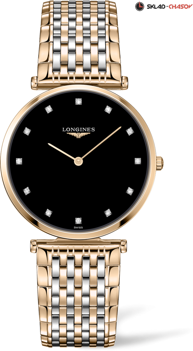 La Grande Classique — символ классической элегантности и совершенства часов Longines. Характерными особенностями коллекции являются тонкий корпус и большое разнообразие версий. Выразительная и классическая женская кварцевая модель, индикация часов и минут центральными стрелками, 12 бриллиантов на циферблате (0.081 ct)
