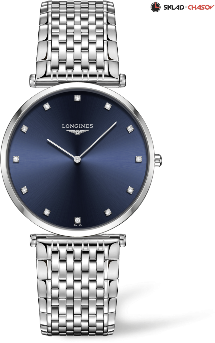 La Grande Classique — символ классической элегантности и совершенства часов Longines. Характерными особенностями коллекции являются тонкий корпус и большое разнообразие версий. Выразительная и классическая женская кварцевая модель, индикация часов и минут центральными стрелками, 12 бриллиантов на циферблате (0.081 ct)