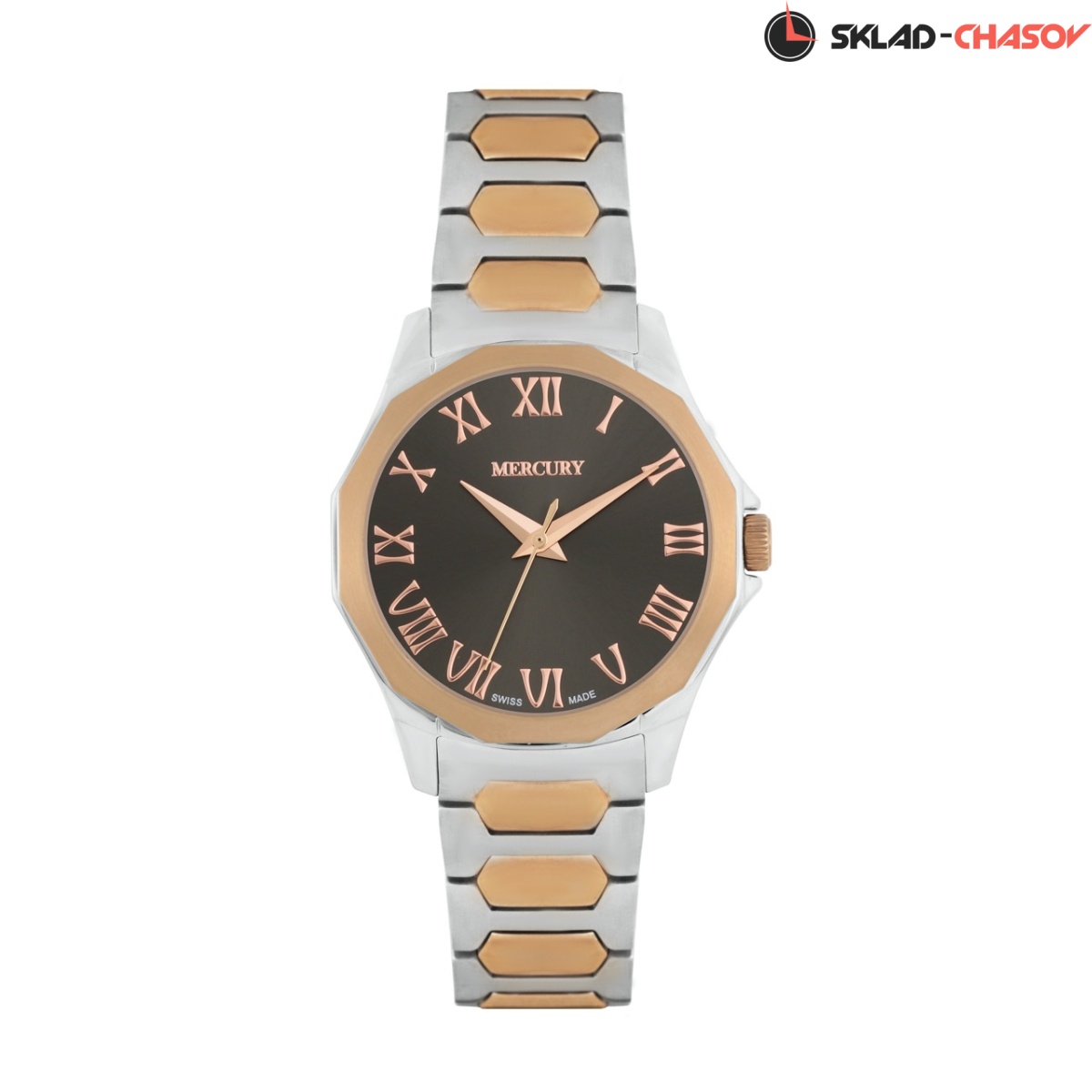 Кварцевые Женские часы Mercury, коллекция Dodegone (MEL461-SR-4), производство ШВЕЙЦАРИЯ, диаметр - 32 мм, материал корпуса - Сталь и Розовый PVD, Браслет, материал браслета - Сталь и Розовый PVD, циферблат - Шоколадный, Римские цифры
