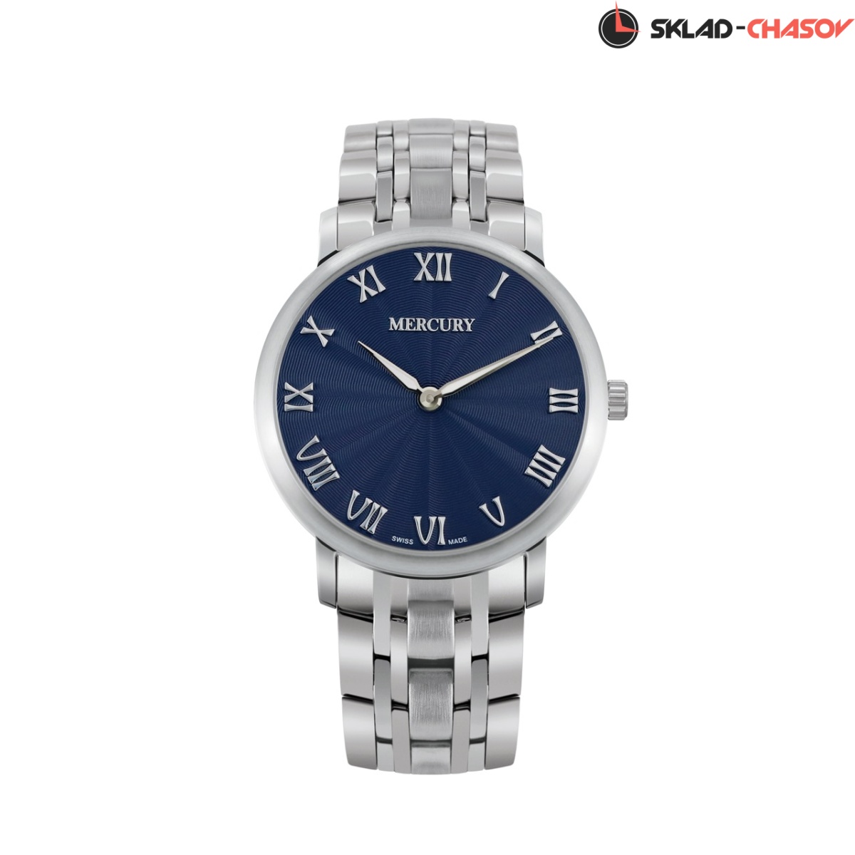 Кварцевые Женские часы Mercury (ME400-SS-9), производство ШВЕЙЦАРИЯ, диаметр - 32 мм, материал корпуса - Сталь, Браслет, материал браслета - Сталь, циферблат - Синий, Римские цифры