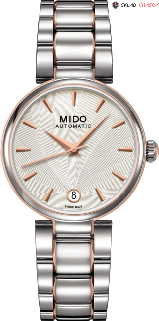 Стильная модель для прекрасной половины. Циферблат украшен узором гильоше в виде волн, бриллианты вместо меток играют на свету. Апертура даты на 6 часов.