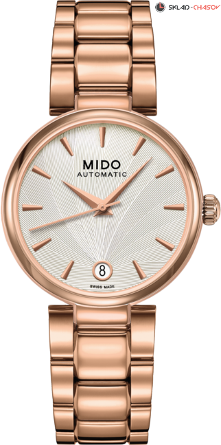 Стильная модель для прекрасной половины. Циферблат украшен узором гильоше в виде волн, бриллианты вместо меток играют на свету. Апертура даты на 6 часов.