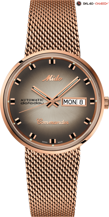 Часы для любителей ретро-стиля. Четкие формы, браслет из миланского плетения, циферблат с узором Sunray, четкая контрастная разметка, заводная головка с системой Aquadura.