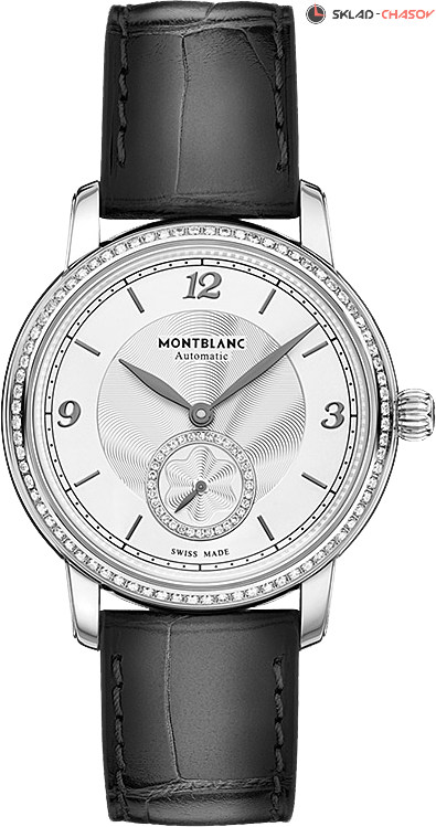 Элегантная женская механическая модель с автоподзаводом. Циферблат украшен 28 драгоценными камнями (0.056 карата).