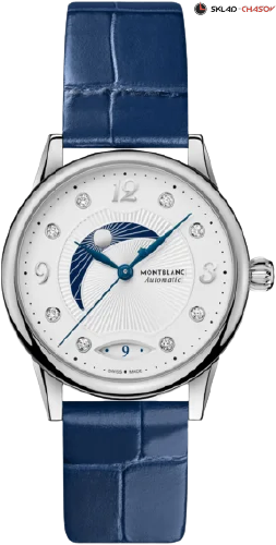 Элегантная женская модель с индикацией день/ночь, даты. Циферблат украшен 8 бриллиантами.