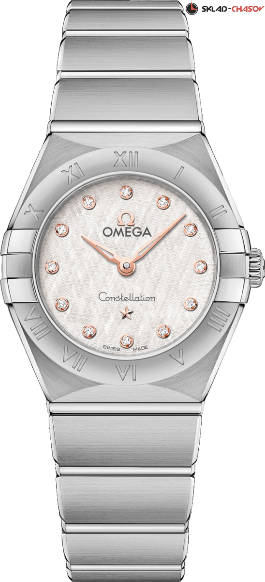 Женская кварцевая модель. Узнаваемый и неповторимый стиль коллекции - это боковые "скобки" и интегрированный браслет. 12 бриллиантов на циферблате. Задняя крышка украшена рельефным медальоном с изображением обсерватории.