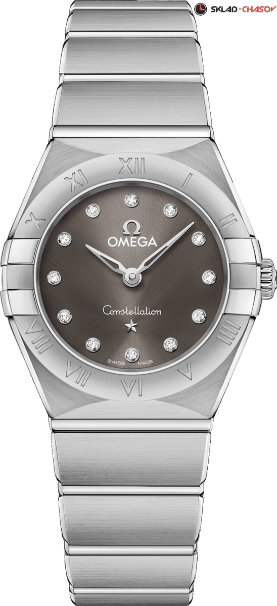 Женская кварцевая модель. Узнаваемый и неповторимый стиль коллекции - это боковые "скобки" и интегрированный браслет. 12 бриллиантов на циферблате. Задняя крышка украшена рельефным медальоном с изображением обсерватории.