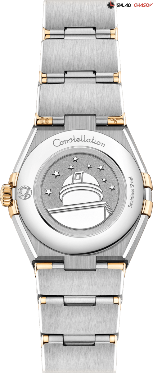 Женская кварцевая модель. Узнаваемый и неповторимый стиль коллекции - это боковые "скобки" и интегрированный браслет. Задняя крышка украшена рельефным медальоном с изображением обсерватории.