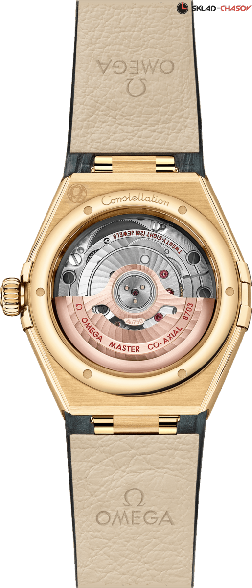 Циферблат из 18-каратного белого золота со "снежным" паве из 354 бриллиантов одинарной огранки. На циферблат часов установлена звезда Constellation из 18-каратного желтого золота, а также великолепная шкала с 12 часовыми индексами из 18-каратного белого золота с изумрудами багетной огранки.