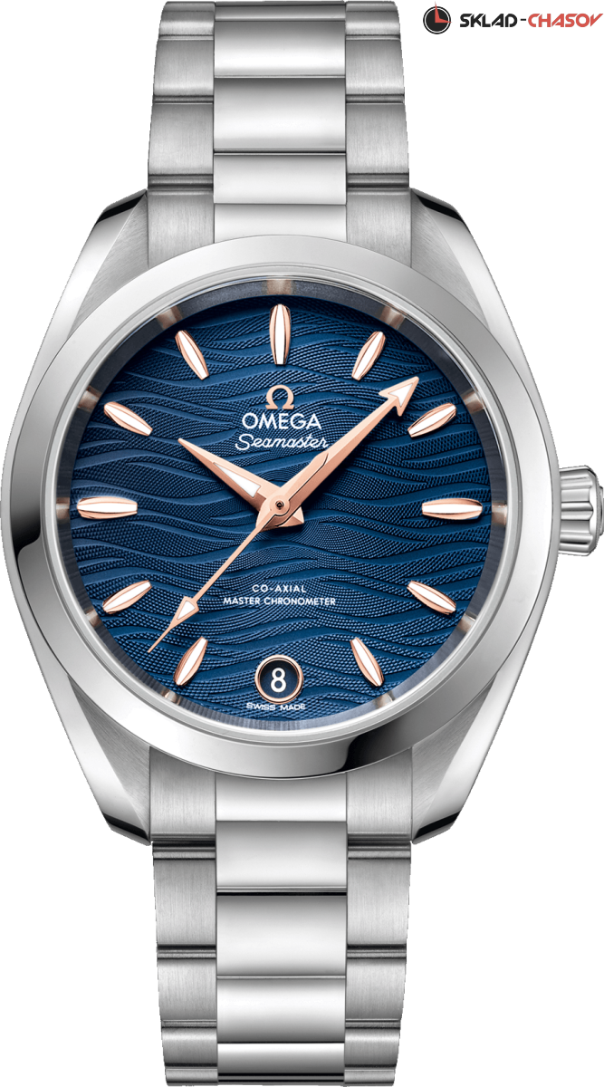Omega Seamaster Aqua Terra выполнены в симметричном корпусе из нержавеющей стали с завинчивающейся задней крышкой, украшенной волновым узором. Циферблат дополнен окошком даты на 6 часах и оформлен в виде волнообразного рисунка, вдохновлённого морским наследием коллекции. Стрелки и метки выполнены из 18K Sedna™ золота и оснащены люминесцентным покрытием Super-LumiNova для лучшей читаемости в темноте. Индексы выполнены в форме корпусов парусников — деталь, подчёркивающая морское наследие модели. Калибр Omega 8800 сертифицирован как Master Chronometer — гарантия высочайшей точности и устойчивости к магнитным полям. Запас хода составляет 55 часов. Защиту циферблата обеспечивает сапфировое стекло с антибликовым покрытием с обеих сторон. Водозащита позволяет использовать часы в воде без риска повреждения. Часы установлены на интегрированный стальной браслет. Это сочетание премиального качества, технологичности и классического дизайна.