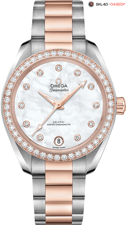 Женские часы Omega Seamaster Aqua Terra выполнены в симметричном корпусе из нержавеющей стали и 18K Sedna™ золота с завинчивающейся задней крышкой, украшенной волновым узором. Циферблат белого цвета дополнен окошком даты на 6 часах и 11 бриллиантами, установленными в держатели из 18K Sedna™ золота. Калибр Omega 8800 сертифицирован как Master Chronometer — гарантия высочайшей точности и устойчивости к магнитным полям. Запас хода составляет 55 часов. Защиту циферблата обеспечивает сапфировое стеклоСапфировое стеклоПрочный и надёжный материал из кристалла сапфира синтетического происхождения, характеризующийся особой твёрдостью и устойчивостью к царапинам и повреждениям. с антибликовым покрытиемАнтибликовое покрытиеСлой оксида металла в 0,13-0,3 микрон, благодаря которому стекло часов не бликует и не отражает свет. Антибликовое покрытие уменьшает отражение света в 10 раз, обеспечивая отличную читаемость показателей циферблата. с обеих сторон. Водозащита позволяет использовать часы в воде без риска повреждения. Часы установлены на интегрированный браслет из нержавеющей стали и 18K Sedna™ золота. Вес модели — около 107 грамм. Это сочетание премиального качества, технологичности и классического дизайна.