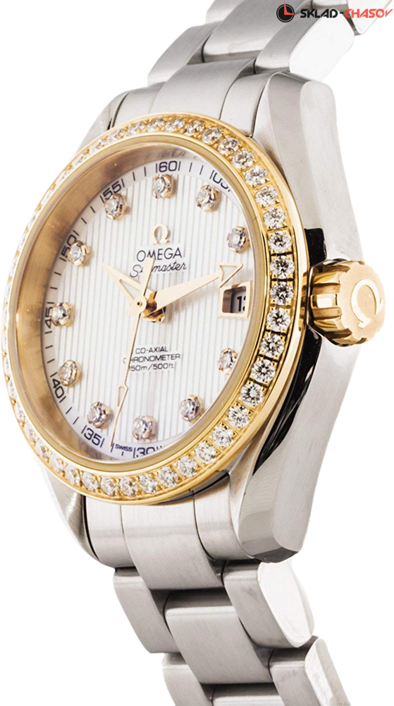 Хронометр C.O.S.C., индикация даты, завинчивающаяся заводная головка, прозрачная задняя крышка, циферблат украшен 11 бриллиантами общим весом 0.19 ct, безель украшают 44 бриллианта общим весом 0.77 ct