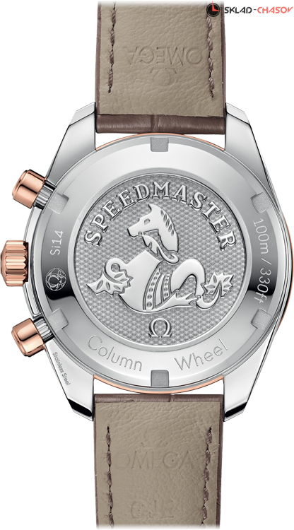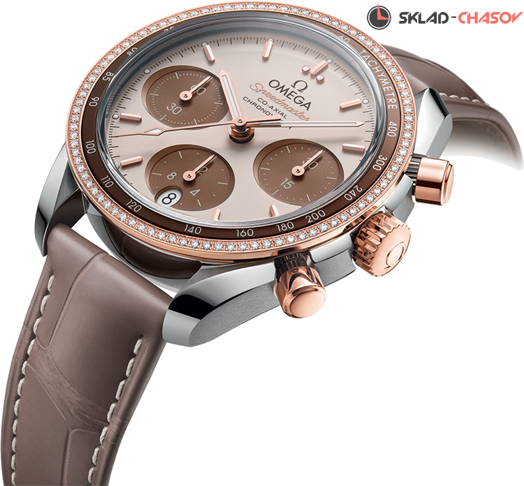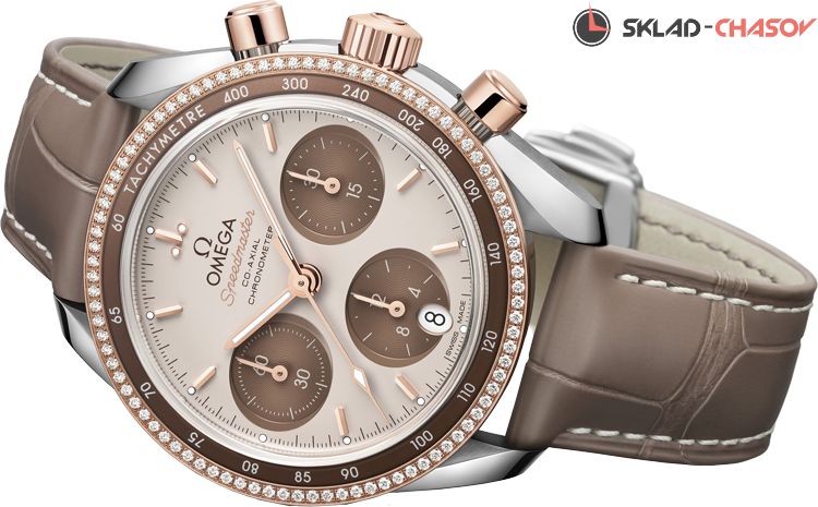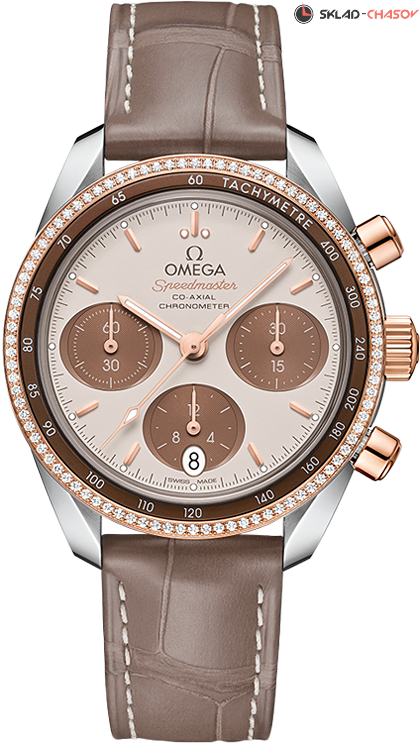 Коллекция Speedmaster 38 мм воплощает эссенцию легендарного хронографа OMEGA в изысканной компактной версии. Корпус из нержавеющей стали и 18-каратного золота Sedna™ украшен инновационным двойным безелем: внутреннее кольцо из коричневого алюминия с тахиметрической шкалой эффектно сочетается с внешним бриллиантовым паве. Циферблат теплого оттенка "капучино" отличается оригинальной композицией: горизонтальные коричневые овальные счетчики гармонируют с вертикальным окошком даты на 6 часах. Стрелки и индексы из золота Sedna™ с покрытием Super-LumiNova обеспечивают идеальную читаемость. Модель дополнена кожаным ремешком серо-коричневого оттенка и оснащена высокоточным коаксиальным механизмом OMEGA 3330. Завершает образ фирменный медальон с морским коньком на задней крышке, подчеркивающий принадлежность к наследию OMEGA.