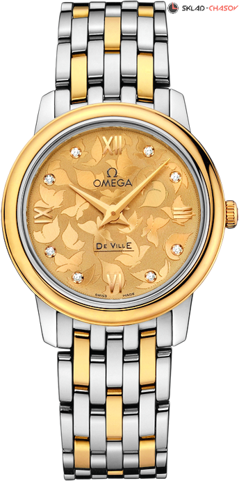 Женская модель, циферблат цвета шампанского украшен бриллиантами и узором бабочки, индикация часов и минут центральными стрелками