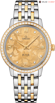 Модель часов OMEGA De Ville Prestige «Butterfly» наполнена истинной красотой, позаимствованной у завораживающего своей грацией мира природы. Данная модель имеет циферблат цвета шампанского с бриллиантами и уникальным узором в виде бабочек, нанесенным методом ramolayage («точечного орнамента»), украшенный бриллиантами безель из 18-каратного розового золота.