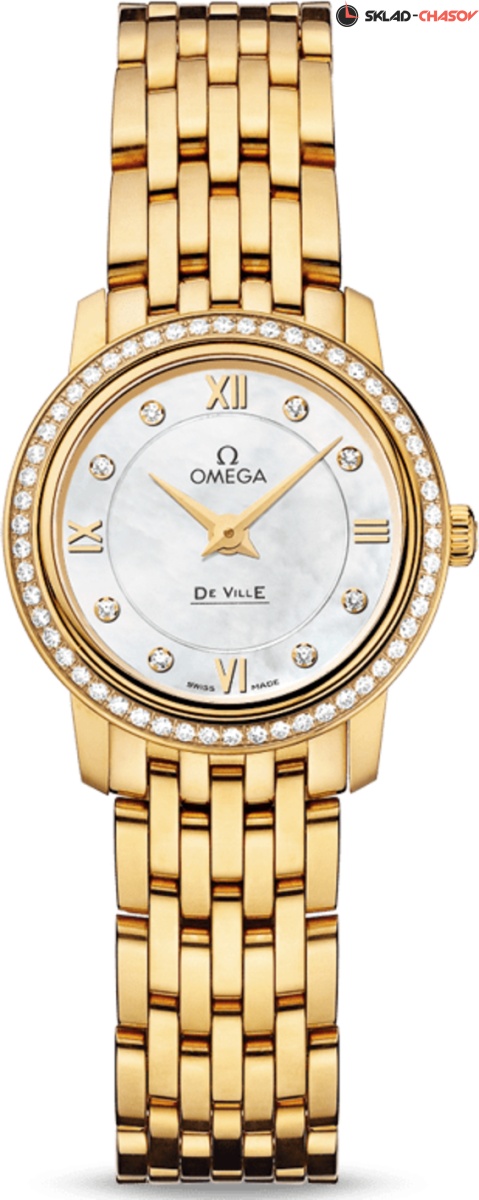 Циферблат украшен 8 бриллиантами общим весом 0.02 ct, безель украшают 54 бриллиатов общим весом 0.28 ct