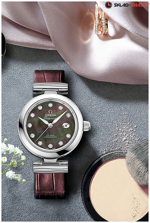 Хронометр C.O.S.C., завинчивающаяся заводная коронка, прозрачная задняя крышка из сапфирового стекла, перламутровый циферблат украшен бриллиантами.