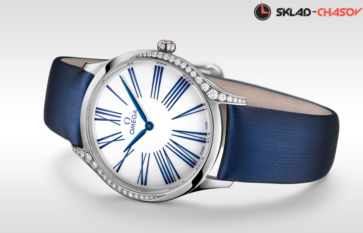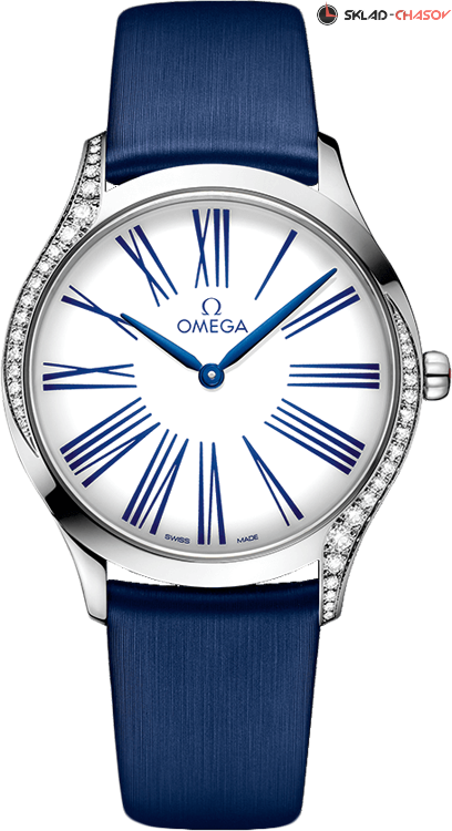 Изысканные женские часы Omega разработаны с учетом предпочтений нового поколения, хотя ее создатели черпали вдохновение в традициях прошлого, новая коллекция Trsor характеризуют смелый и современный дизайн. Подобно женской красоте, ставшей источником вдохновения при разработке дизайна, каждая модель имеет особенный шарм. Тонкий корпус кварцевых часов выполнен из нержавеющей стали, либо из золота и инкрустирован с двух боковых сторон бриллиантами, на циферблате выделяются переводные римские цифры. Заводная коронка украшена бриллиантом и цветочным узором, составленным из пяти логотипов Omega. Индикация часов и минут центральными стрелками, задняя крышка с гладкой и зеркальной поверхностью украшена металлизированным узором в стиле "Her Time".