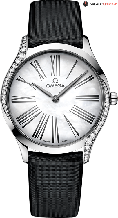 Изысканные женские часы Omega разработаны с учетом предпочтений нового поколения, хотя ее создатели черпали вдохновение в традициях прошлого, новая коллекция Trsor характеризуют смелый и современный дизайн. Подобно женской красоте, ставшей источником вдохновения при разработке дизайна, каждая модель имеет особенный шарм. Тонкий корпус кварцевых часов выполнен из нержавеющей стали, либо из золота и инкрустирован с двух боковых сторон бриллиантами, на циферблате выделяются переводные римские цифры. Заводная коронка украшена бриллиантом и цветочным узором, составленным из пяти логотипов Omega. Индикация часов и минут центральными стрелками, задняя крышка с гладкой и зеркальной поверхностью украшена металлизированным узором в стиле "Her Time".