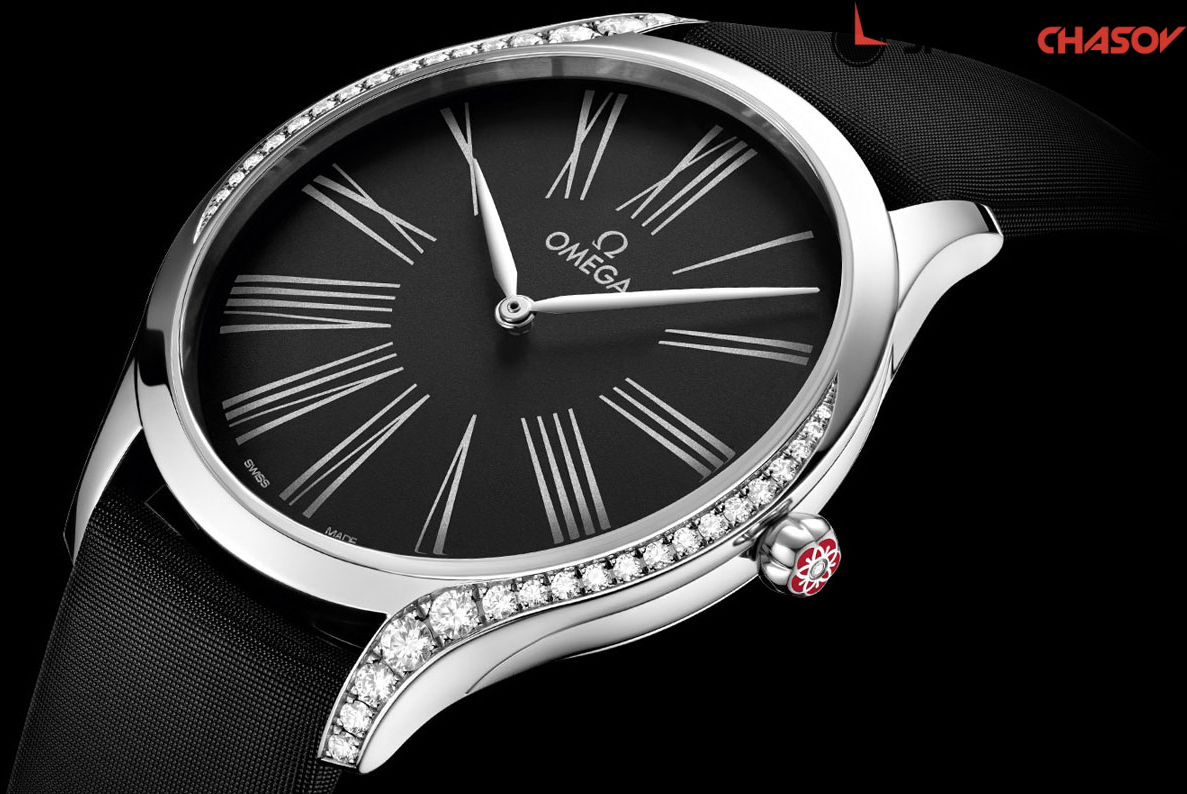 Изысканные женские часы Omega разработаны с учетом предпочтений нового поколения, хотя ее создатели черпали вдохновение в традициях прошлого, новая коллекция Trsor характеризуют смелый и современный дизайн. Подобно женской красоте, ставшей источником вдохновения при разработке дизайна, каждая модель имеет особенный шарм. Тонкий корпус кварцевых часов выполнен из нержавеющей стали, либо из золота и инкрустирован с двух боковых сторон бриллиантами, на циферблате выделяются переводные римские цифры. Заводная коронка украшена бриллиантом и цветочным узором, составленным из пяти логотипов Omega. Индикация часов и минут центральными стрелками, задняя крышка с гладкой и зеркальной поверхностью украшена металлизированным узором в стиле "Her Time".