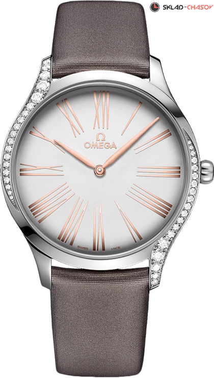Изысканные женские часы Omega разработаны с учетом предпочтений нового поколения, хотя ее создатели черпали вдохновение в традициях прошлого, новая коллекция Trsor характеризуют смелый и современный дизайн. Подобно женской красоте, ставшей источником вдохновения при разработке дизайна, каждая модель имеет особенный шарм. Тонкий корпус кварцевых часов выполнен из нержавеющей стали, либо из золота и инкрустирован с двух боковых сторон бриллиантами, на циферблате выделяются переводные римские цифры. Заводная коронка украшена бриллиантом и цветочным узором, составленным из пяти логотипов Omega. Индикация часов и минут центральными стрелками, задняя крышка с гладкой и зеркальной поверхностью украшена металлизированным узором в стиле "Her Time".