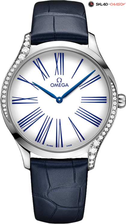 Изысканные женские часы Omega разработаны с учетом предпочтений нового поколения, хотя ее создатели черпали вдохновение в традициях прошлого, новая коллекция Trsor характеризуют смелый и современный дизайн. Подобно женской красоте, ставшей источником вдохновения при разработке дизайна, каждая модель имеет особенный шарм. Тонкий корпус кварцевых часов выполнен из нержавеющей стали, либо из золота и инкрустирован с двух боковых сторон бриллиантами, на циферблате выделяются переводные римские цифры. Заводная коронка украшена бриллиантом и цветочным узором, составленным из пяти логотипов Omega. Индикация часов и минут центральными стрелками, задняя крышка с гладкой и зеркальной поверхностью украшена металлизированным узором в стиле "Her Time".