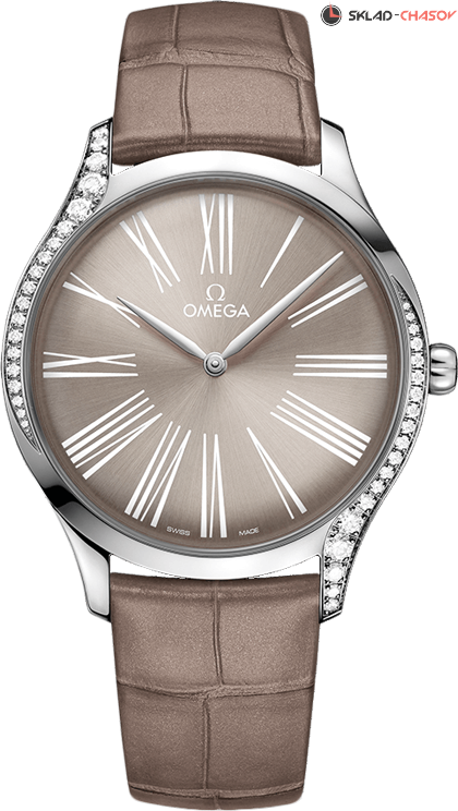 Изысканные женские часы Omega разработаны с учетом предпочтений нового поколения, хотя ее создатели черпали вдохновение в традициях прошлого, новая коллекция Trsor характеризуют смелый и современный дизайн. Подобно женской красоте, ставшей источником вдохновения при разработке дизайна, каждая модель имеет особенный шарм. Тонкий корпус кварцевых часов выполнен из нержавеющей стали, либо из золота и инкрустирован с двух боковых сторон бриллиантами, на циферблате выделяются переводные римские цифры. Заводная коронка украшена бриллиантом и цветочным узором, составленным из пяти логотипов Omega. Индикация часов и минут центральными стрелками, задняя крышка с гладкой и зеркальной поверхностью украшена металлизированным узором в стиле "Her Time".