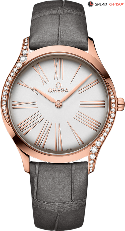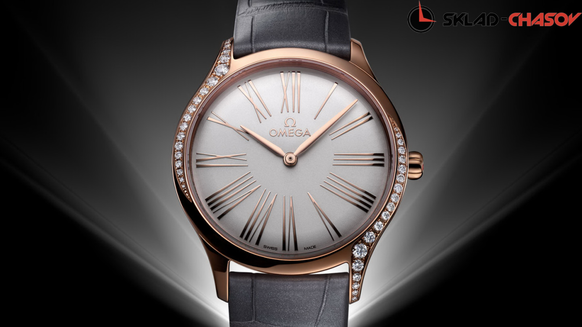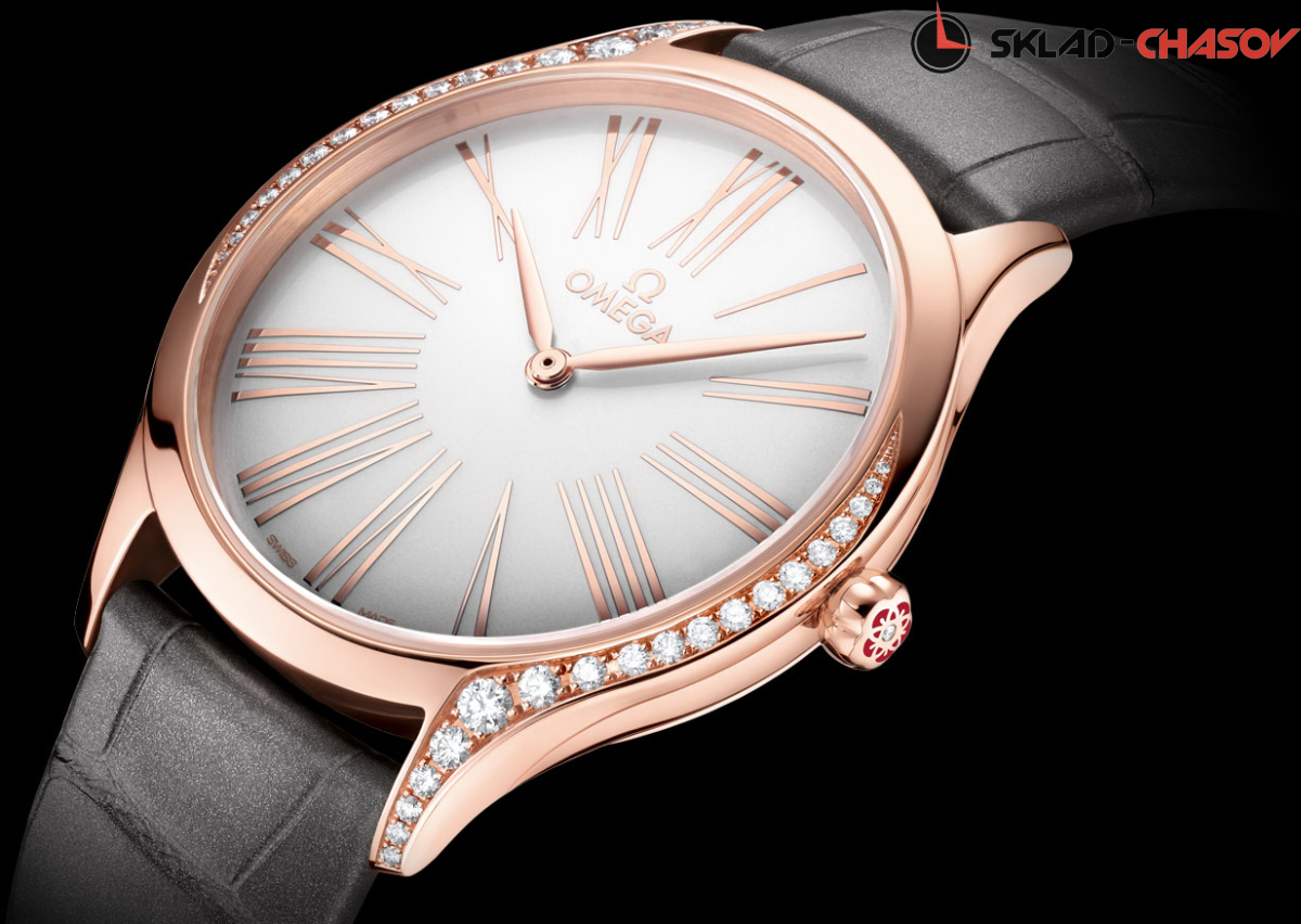 Изысканные женские часы Omega разработаны с учетом предпочтений нового поколения, хотя ее создатели черпали вдохновение в традициях прошлого, новая коллекция Trsor характеризуют смелый и современный дизайн. Подобно женской красоте, ставшей источником вдохновения при разработке дизайна, каждая модель имеет особенный шарм. Тонкий корпус кварцевых часов выполнен из нержавеющей стали, либо из золота и инкрустирован с двух боковых сторон бриллиантами, на циферблате выделяются переводные римские цифры. Заводная коронка украшена бриллиантом и цветочным узором, составленным из пяти логотипов Omega. Индикация часов и минут центральными стрелками, задняя крышка с гладкой и зеркальной поверхностью украшена металлизированным узором в стиле "Her Time".