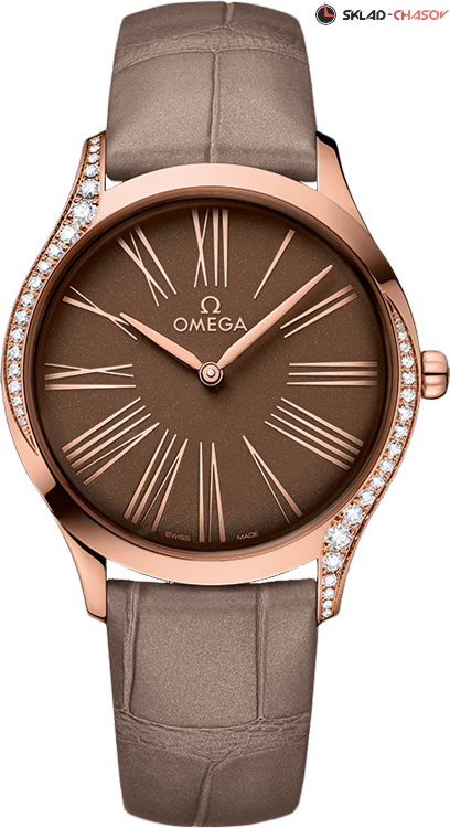 Изысканные женские часы Omega разработаны с учетом предпочтений нового поколения, хотя ее создатели черпали вдохновение в традициях прошлого, новая коллекция Trsor характеризуют смелый и современный дизайн. Подобно женской красоте, ставшей источником вдохновения при разработке дизайна, каждая модель имеет особенный шарм. Тонкий корпус кварцевых часов выполнен из нержавеющей стали, либо из золота и инкрустирован с двух боковых сторон бриллиантами, на циферблате выделяются переводные римские цифры. Заводная коронка украшена бриллиантом и цветочным узором, составленным из пяти логотипов Omega. Индикация часов и минут центральными стрелками, задняя крышка с гладкой и зеркальной поверхностью украшена металлизированным узором в стиле "Her Time".