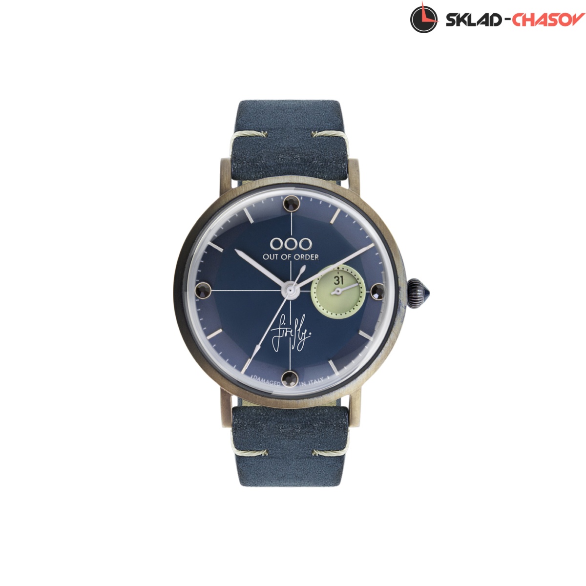 Отличительная черта коллекции Firefly (англ. «светлячок») – это выгравированная на задней крышке стрекоза, за которой – японский кварцевый механизм Miyota 6P26. Лаконичный циферблат подчеркивается кристаллами и заводной головкой необычной формы. Часы из этой коллекции дополняет сделанный вручную в Италии ремешок с акцентной прострочкой.