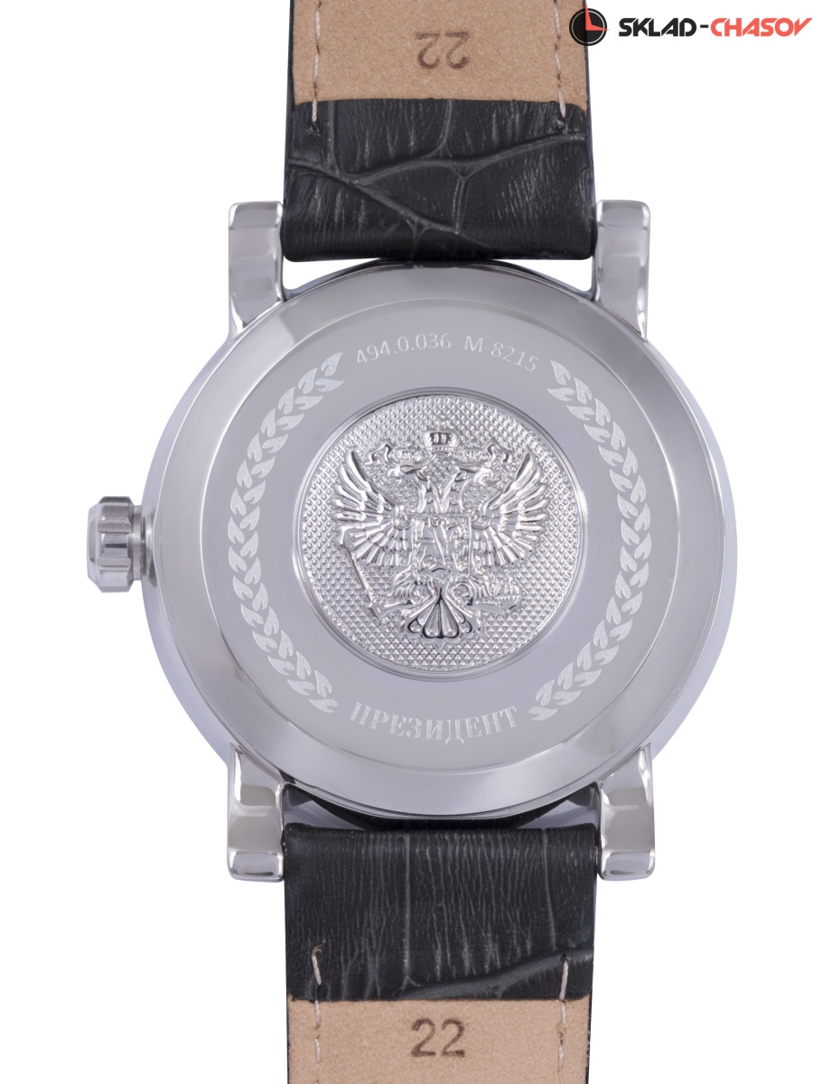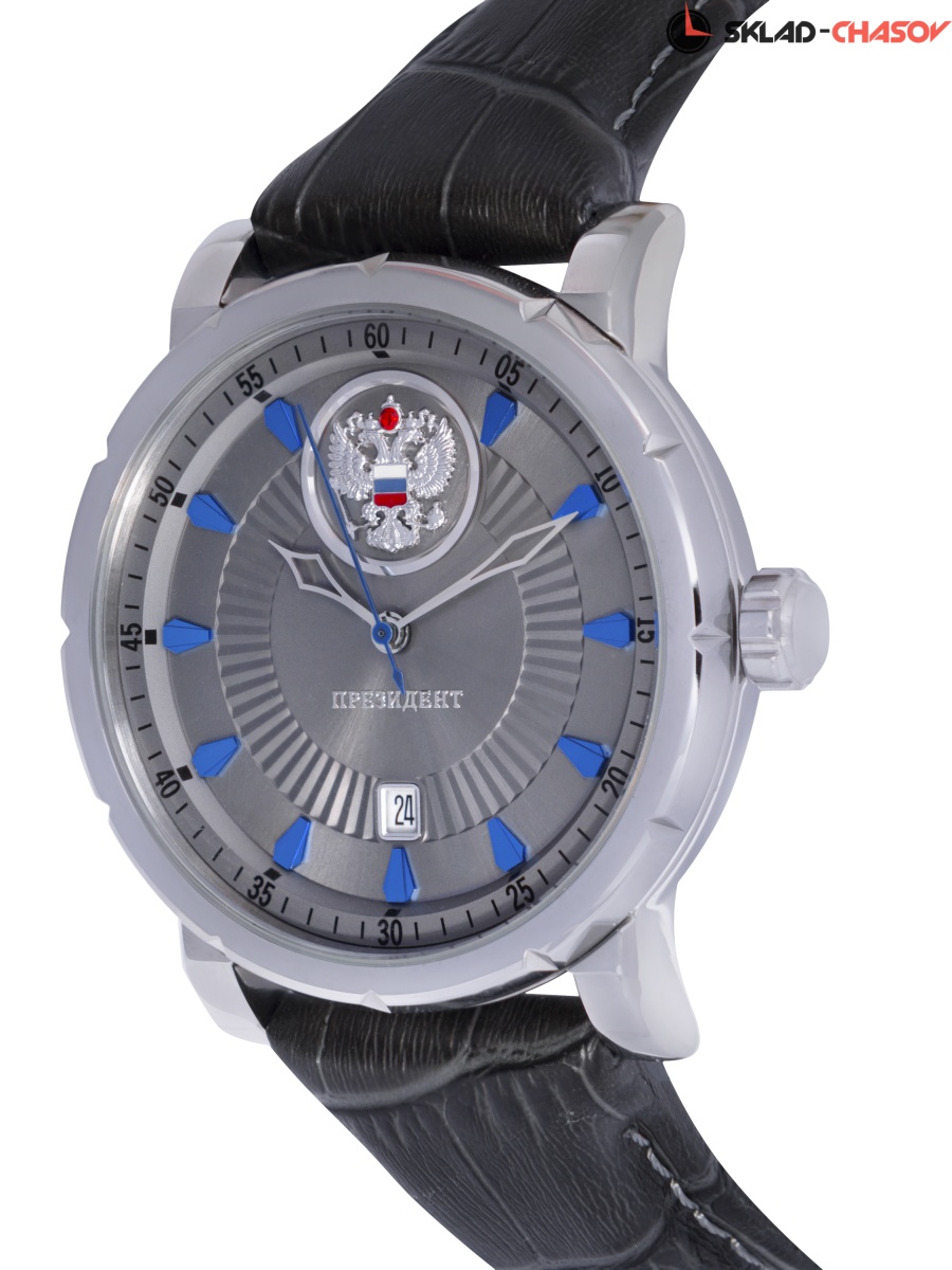 Механические часы с автоподзаводом из коллекции Президент понравятся поклонникам классики. Презентабельный черный циферблат с окном даты и двуглавым орлом контрастирует со стрелками и лучиками, определяющими время. Металлический корпус отличается практичностью, устойчивостью к коррозии и влиянию влаги.