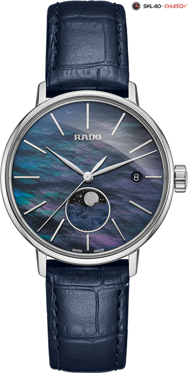 Женская модель, индикация фазы луны на 6 часах, индикация даты в положении 3 часа.
