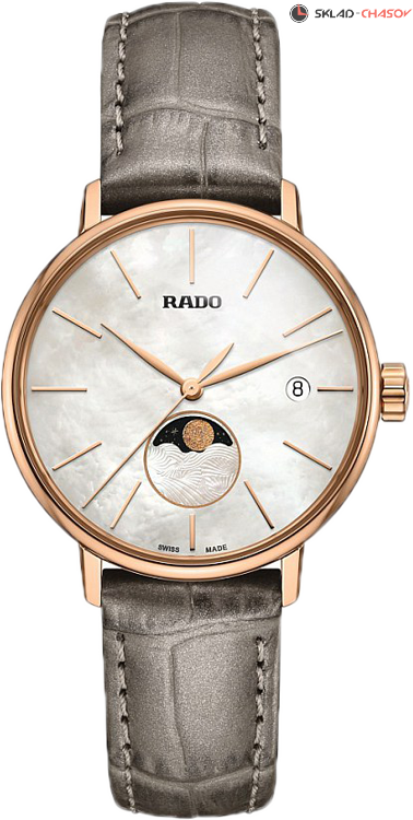 Женская модель, индикация фазы луны на 6 часах, индикация даты в положении 3 часа.