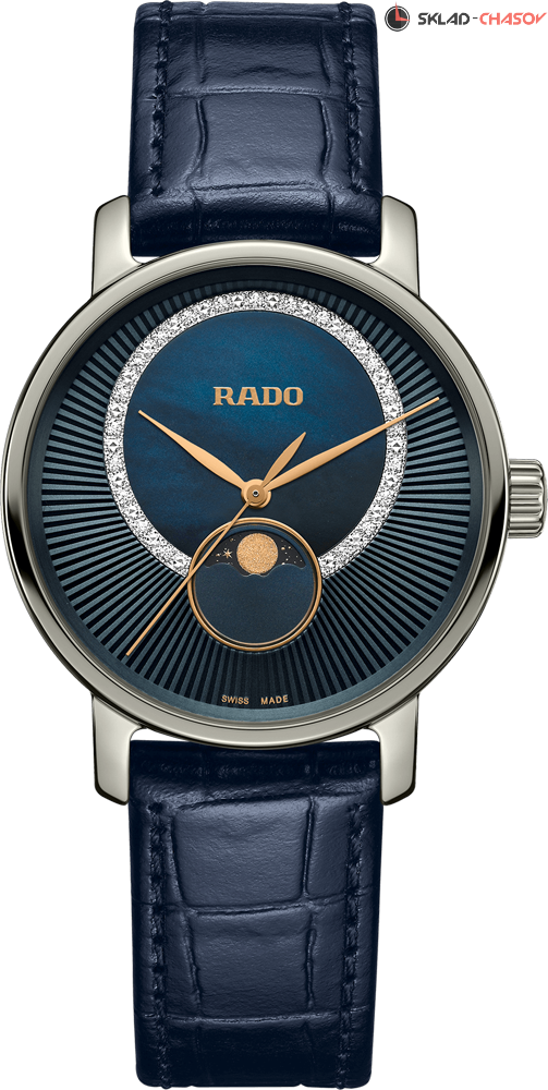 Монолитный керамический корпус. Циферблат этой женской модели выполнен из окружностей насыщенного цвета, украшенных 21 бриллиантами 0,06ct и перламутром.