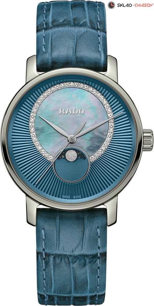 Монолитный керамический корпус. Циферблат этой женской модели выполнен из окружностей насыщенного цвета, украшенных 21 бриллиантами 0,06ct и перламутром.