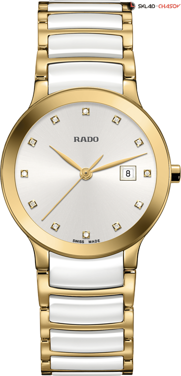 Женская модель, индикация часов, минут и секунд центральными стрелками, окошко даты в положении 3 часа, циферблат украшен 12 бриллиантами общим весом 0.0252 ct