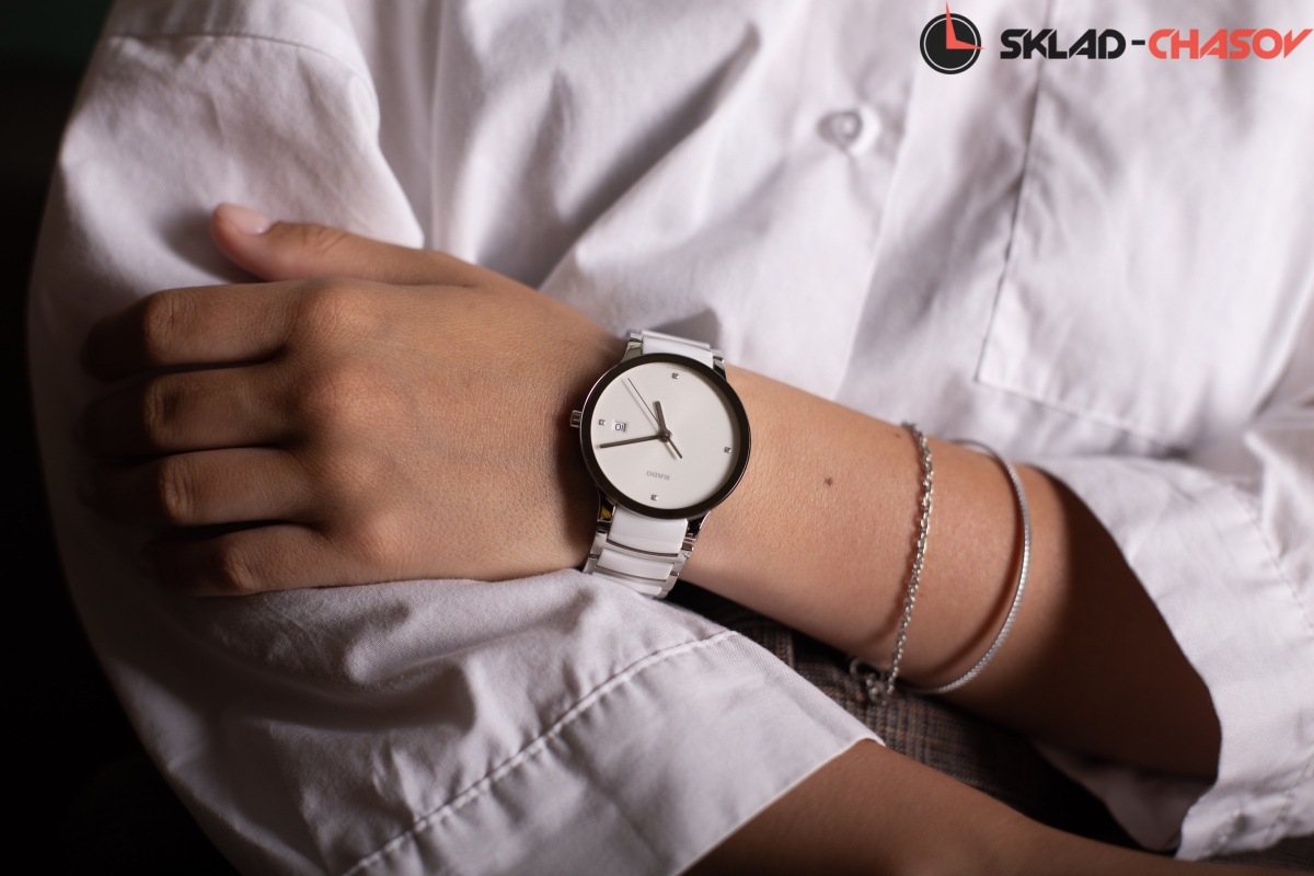 выпуклое стекло, застежка из титанового сплава, бриллианты 4 шт - 0.011ct
