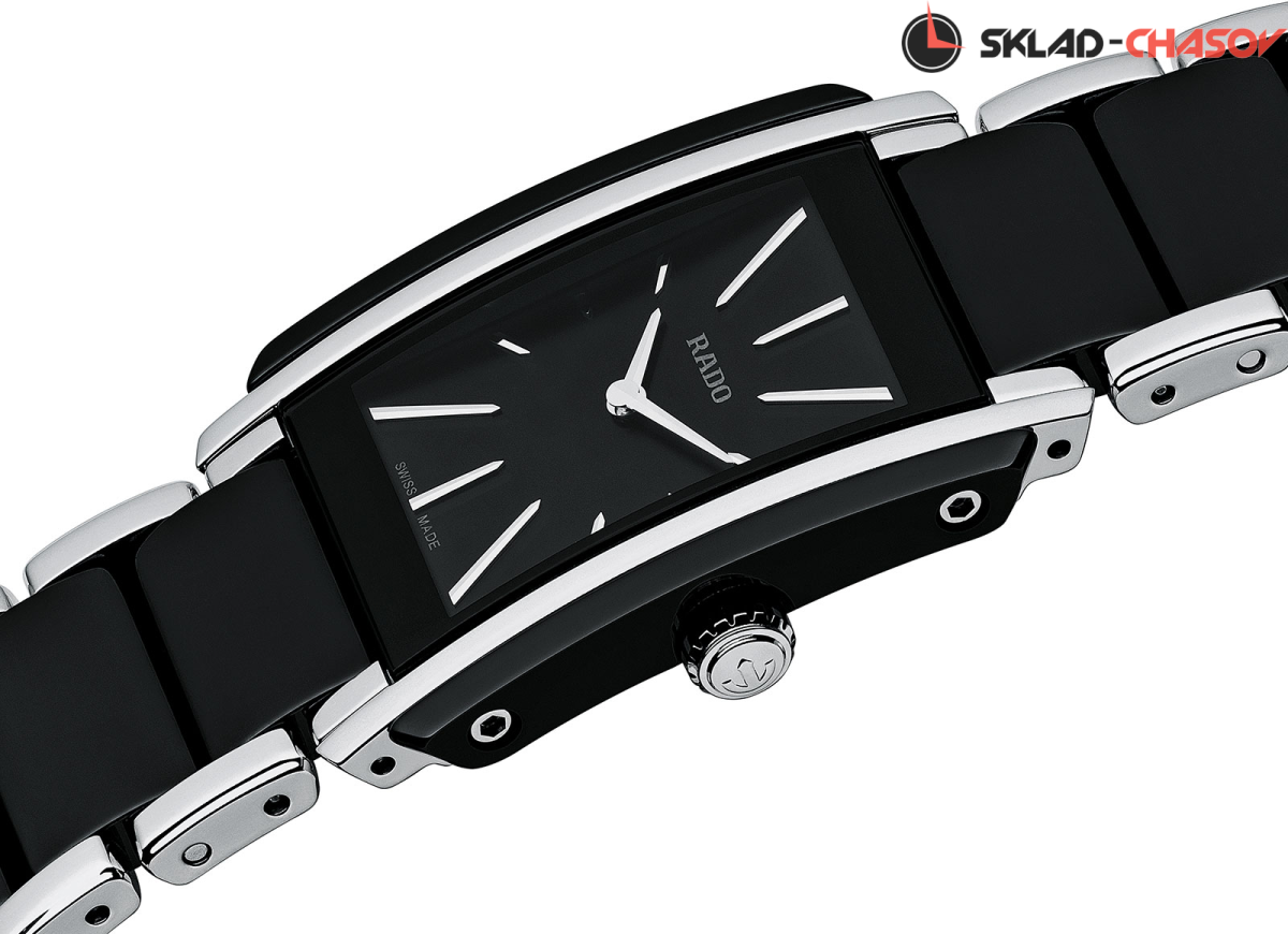 Кварцевая женская модель. Керамические накладки на корпусе и вставки на браслете.