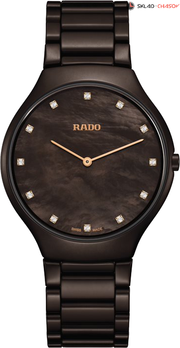 Ультра тонкий керамический корпуc (5 мм) циферблат украшен бриллиантами.