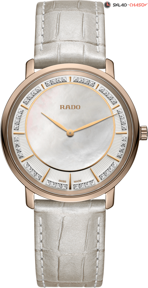 Циферблат этой женской модели выполнен из натурального перламутра, украшенного 48 бриллиантами 0.182ct. Корпус толщиной всего 5.3 мм, делает часы минималистичным и удобным аксессуаром.