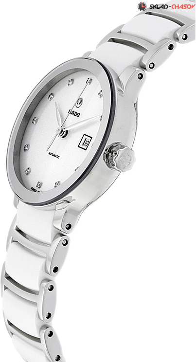 Женская модель, индикация часов, минут и секунд центральными стрелками, окошко даты в положении 3 часа, циферблат украшен 12 бриллиантами общим весом 0.0252 ct