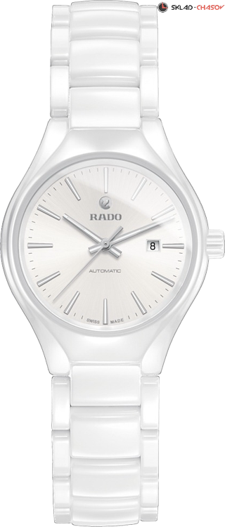 Женская модель, индикация часов, минут и секунд центральными стрелками, окошко даты в положении 3 часа