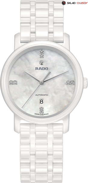 Монолитный керамический корпус, перламутровый циферблат украшен бриллиантами