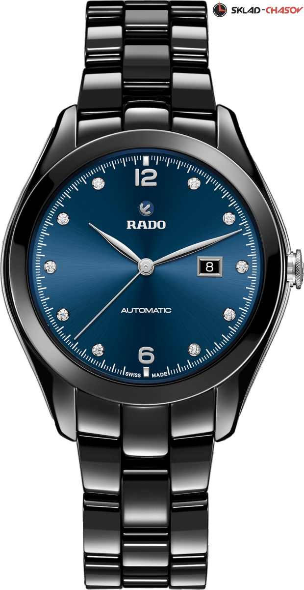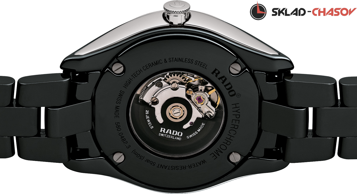 Элегантная модель выполнена в моноблочном корпусе из высокотехнологичной керамики. Циферблат украшен брильянтами. Окошко даты в положении 3 часа. Прозрачная задняя крышка из сапфирового стекла.